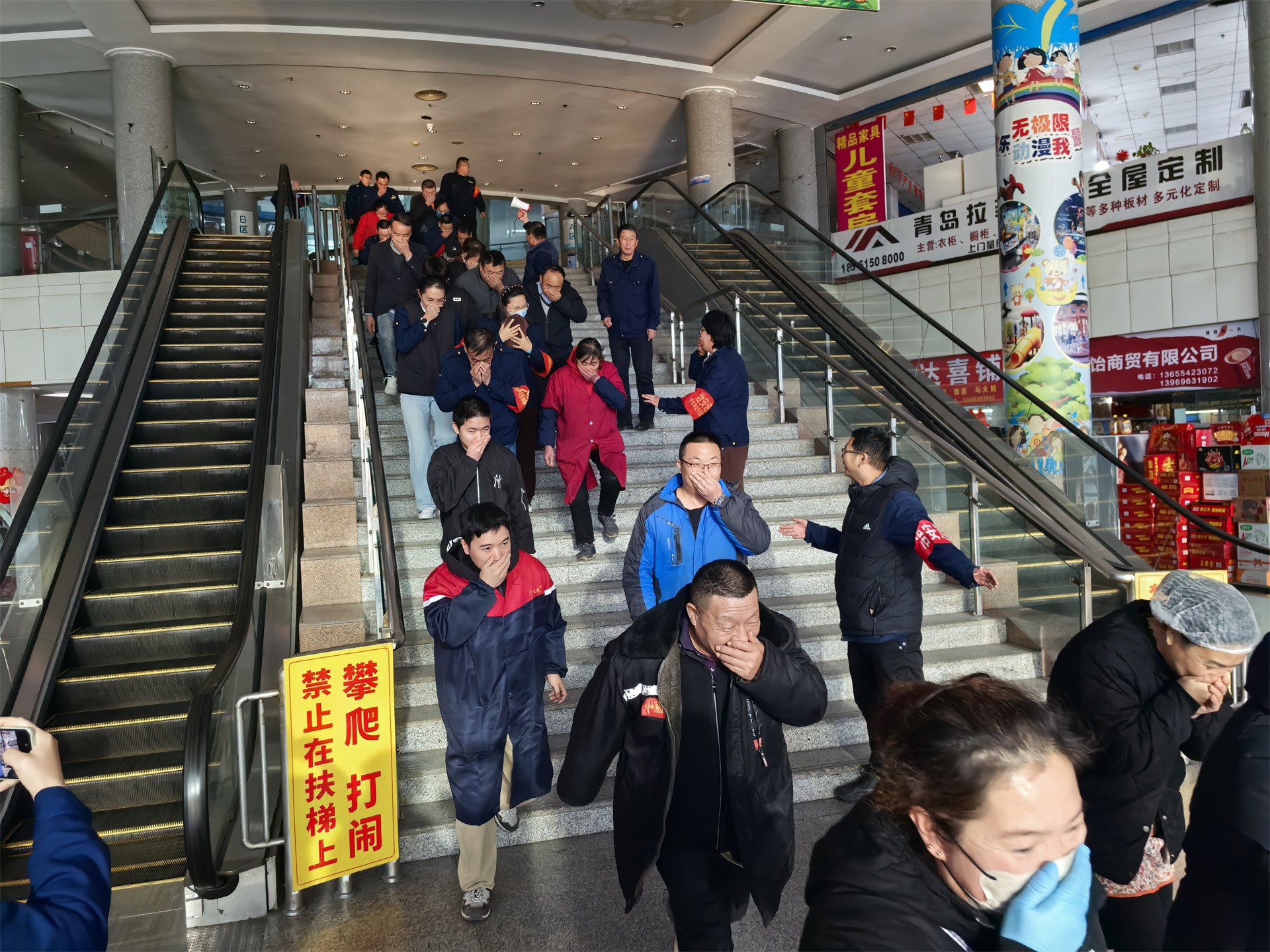 应急疏散演练现场,随着火灾预警信号响起,应急指挥人员迅速就位,各小组严格按照《消防安全应急疏散预案》分工协作。引导经商业户遵循“低姿弯腰、捂口鼻避免浓烟吸入”的规范动作,沿二楼预设路线快速撤离至安全区域集合点。整个过程紧张有序、高效规范,切实将理论知识转化为实操技能,进一步强化区域应急疏散组织能力。