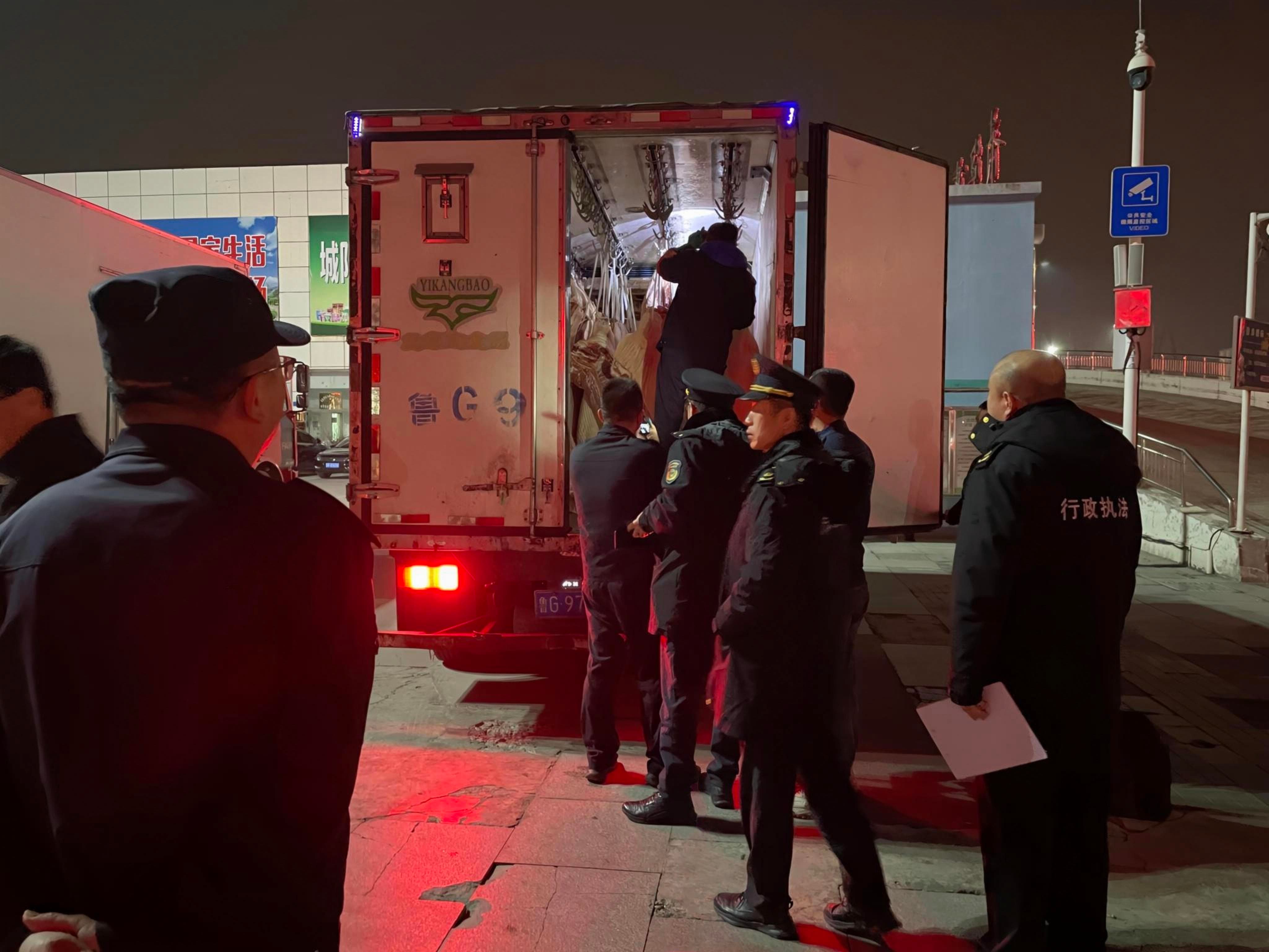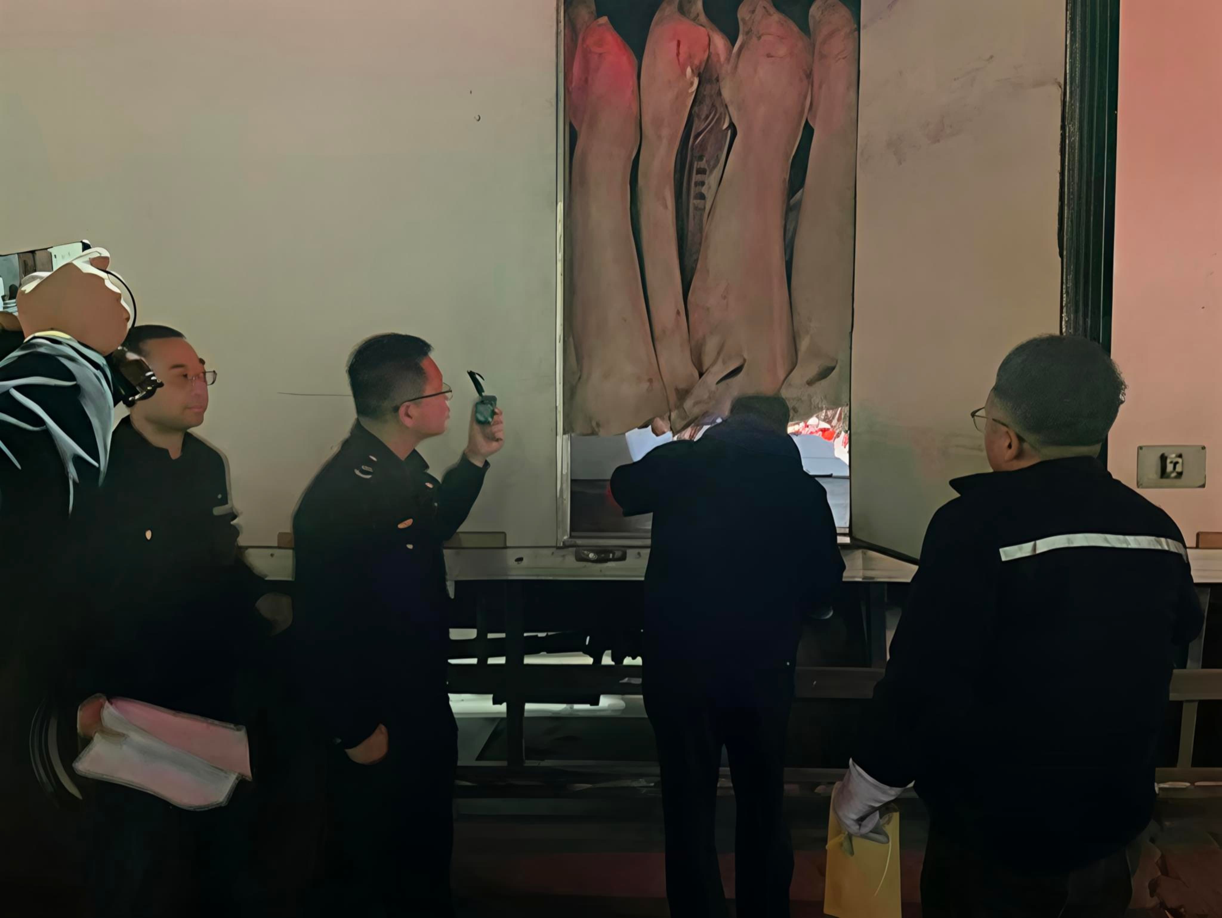 聚焦生鲜肉产品交易特点开展夜间联合检查,逐项核查经营业户证照是否齐全有效、进货渠道是否合法正规,重点查验动物检疫合格证明、肉品品质检验合格证是否完备,核对票据信息与现场肉品是否一致,严防不合格肉品流入市场。