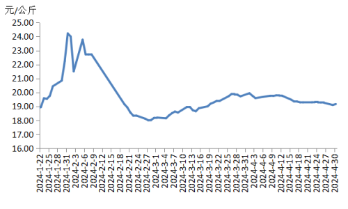 本周华北地区猪肉价格环比小幅下跌。规模养殖场出栏生猪的节奏尚可。终端市场备货“五一”假期的积极性不高,屠宰企业订单量仅小幅增加,批发市场竞争激烈,经销商存在压价拿货意向,猪肉价格小幅下跌。